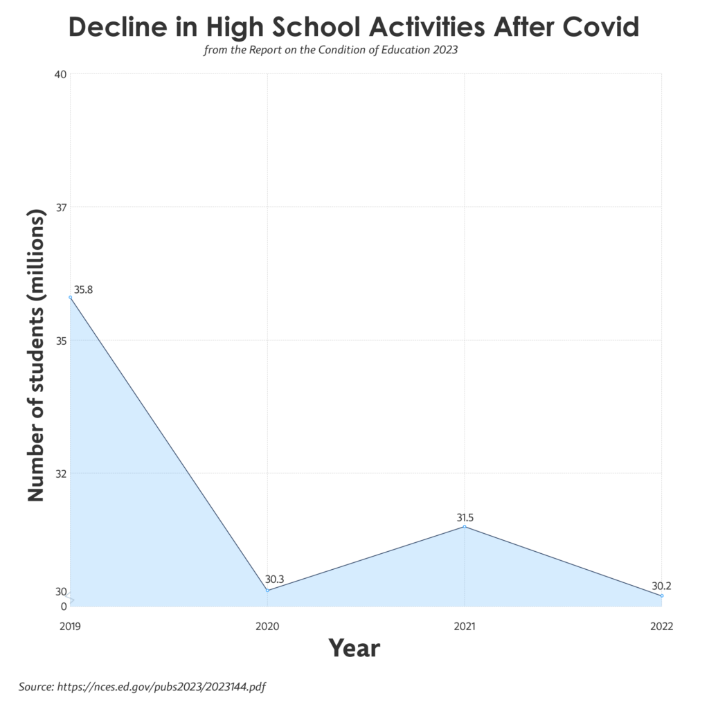 Before the pandemic, after-school activities were thriving, and students had a plethora of options to choose from. These activities played a crucial role in fostering personal development, social interaction, and skill-building among students. However, the pandemic disrupted this ecosystem, as social distancing measures and remote learning became the norm. Participation in traditional after-school activities plummeted as from 2020 to 2021 only 62% participated in the same activity (Afterschool Alliance, 2021). This left students with limited outlets for socialization and personal growth.